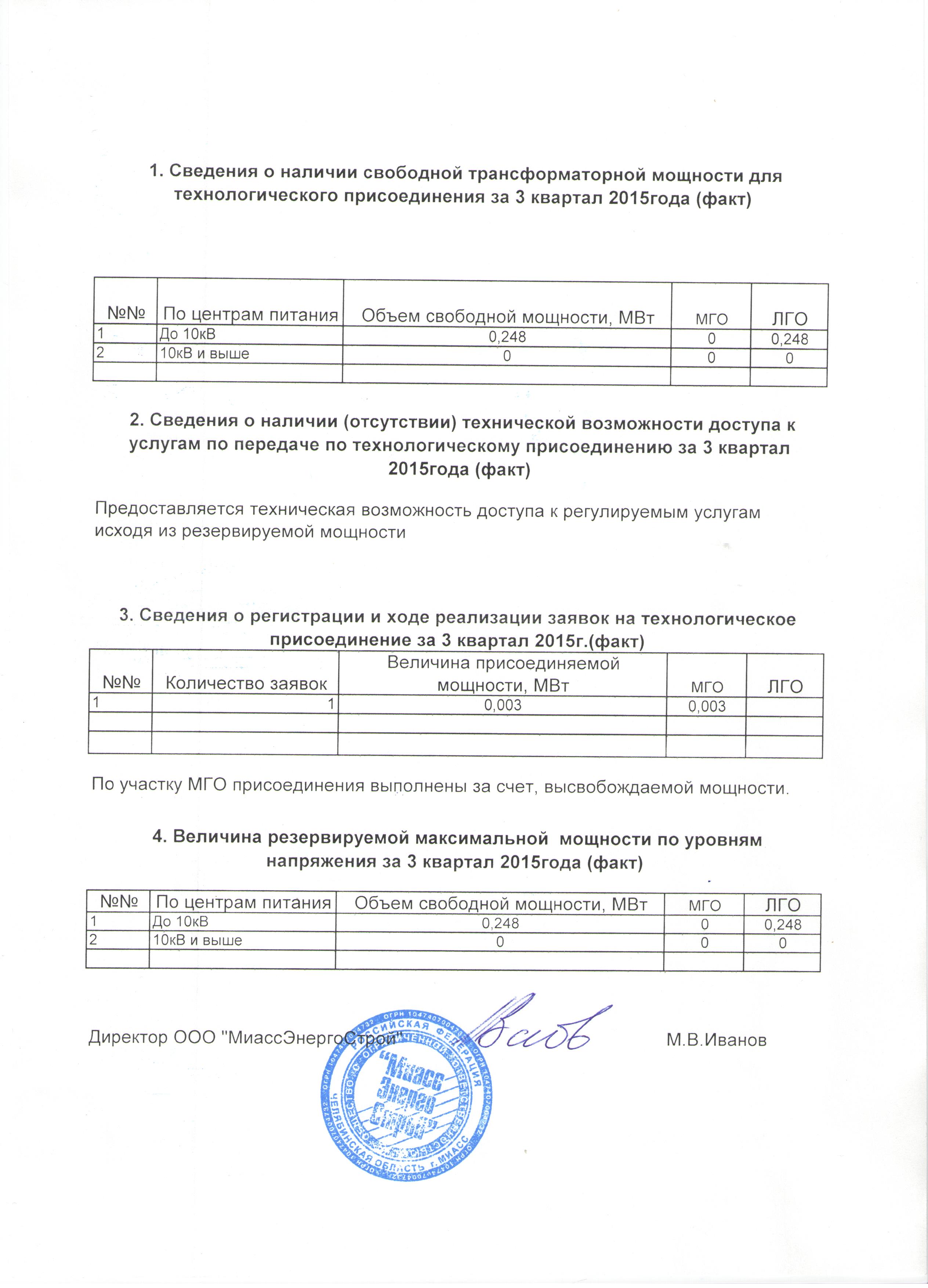 Наличие свободной, резервируемой мощности и количество поданных заявок за 3 квартал 2015 года558.83 KB