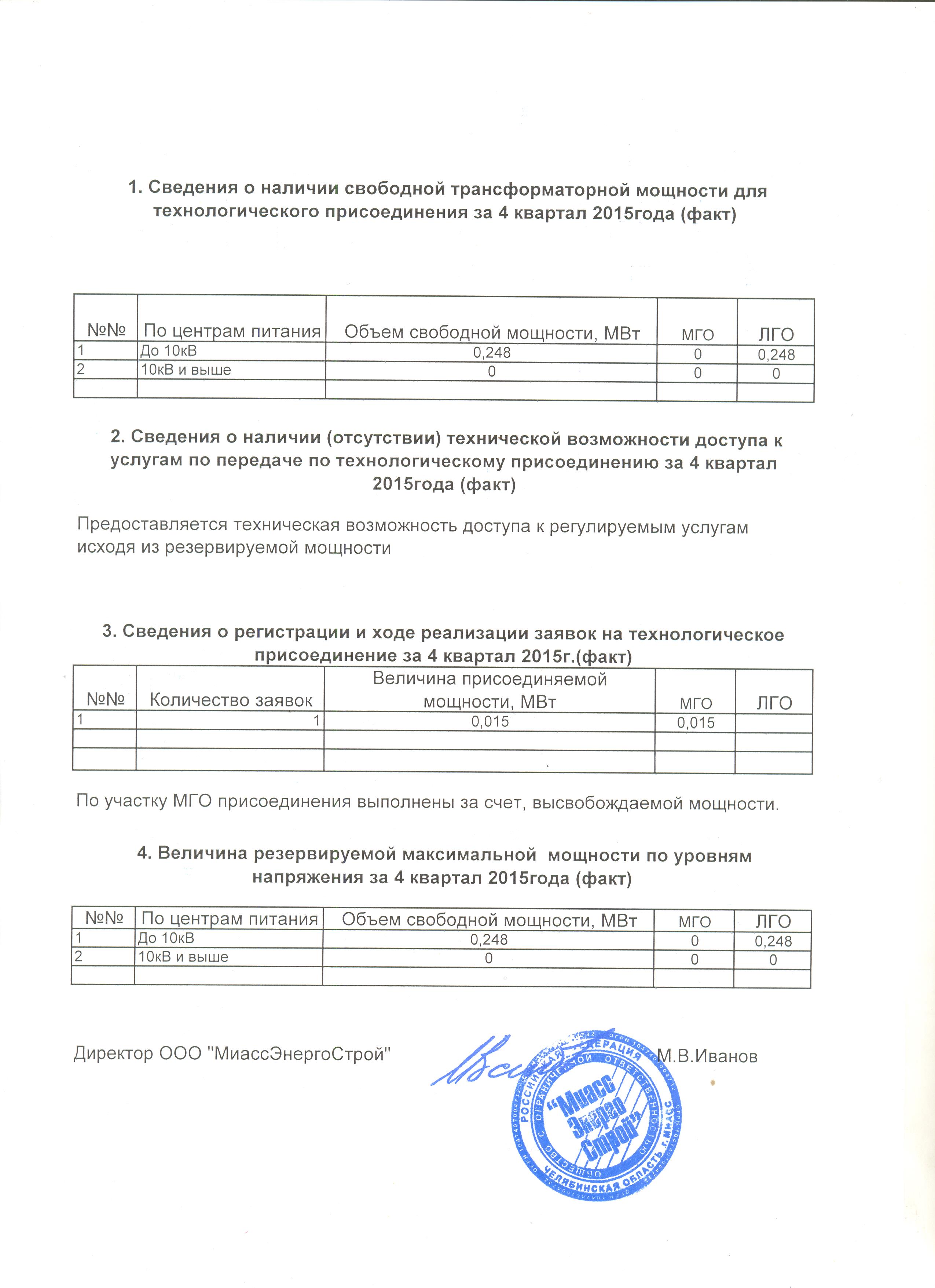 Наличие свободной, резервируемой мощности и количество поданных заявок за 4 квартал 2015 года558.16 KB