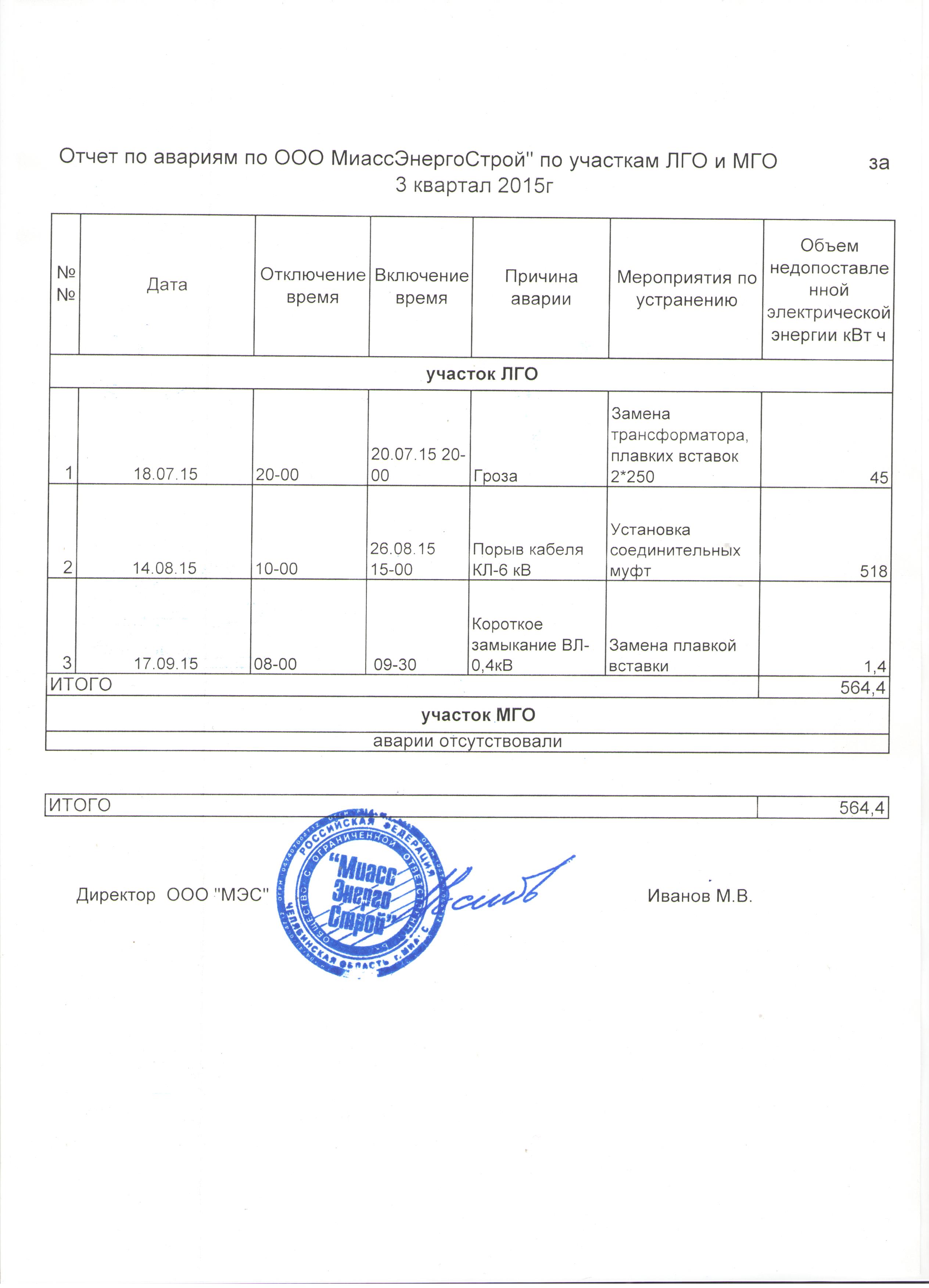 Отчет по авариям за 1 квартал 2015 года430.47 KB Скачать -Отчет по авариям за 1 квартал 2015 года Отчет по авариям за 2 квартал 2015 года437.72 KB Скачать -Отчет по авариям за 2 квартал 2015 года Отчет по авариям за 3 квартал 2015г438.88 KB Скачать -Отчет по авариям за 3 квартал 2015 года Отчет по авариям за 4 квартал 2015г443.52 KB Скачать -Отчет по авариям за 4 квартал 2015 года