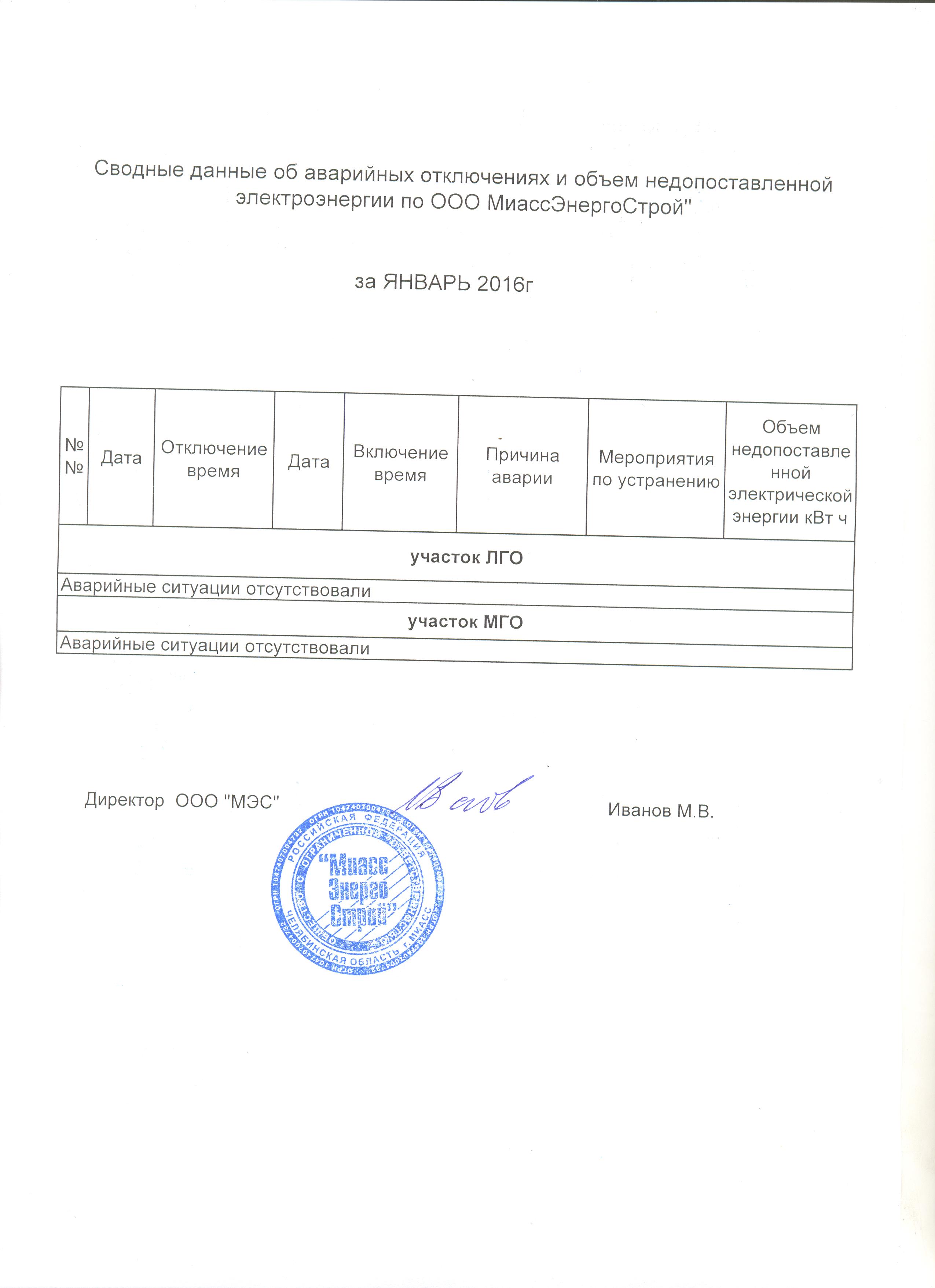 Сводные данные об аварийных отключениях и объем недопоставленной в результате аварийных отключений электрической энергии в 2016г31 KB